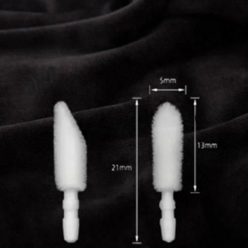 先端が斜めにカットされた形状のため、2本で使用することにより まつ毛をしっかりと挟み込むことが可能。 同時に、全面、背面のまつ毛を洗浄したり、汚れをふき取ることができるため、 作業効率がUPします。 また、柔らかいスポンジ状のため、挟み込み上に引っ張り上げても痛くなく突っ張りません。 まつげを包みこむ様に洗浄でき、更に両面使用できるので、時短かつ洗浄効率が抜群。 先端は取り外し可能の使い捨て。 お客様一人ごとに、破棄し新しいスティックで衛生面◎